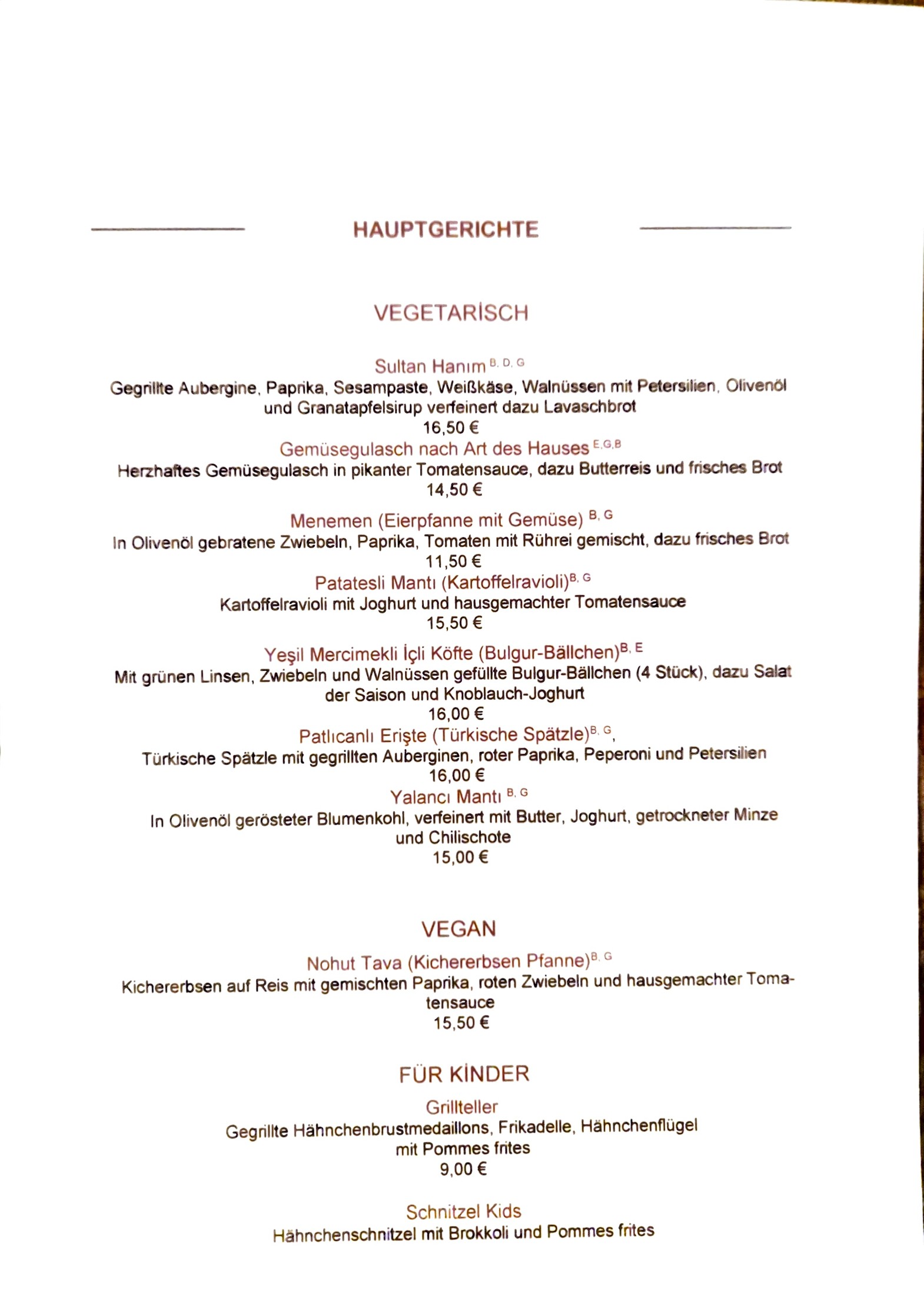 AN DEN OSTERNTAGEN BİETEN WIR A' LA CARTE AN